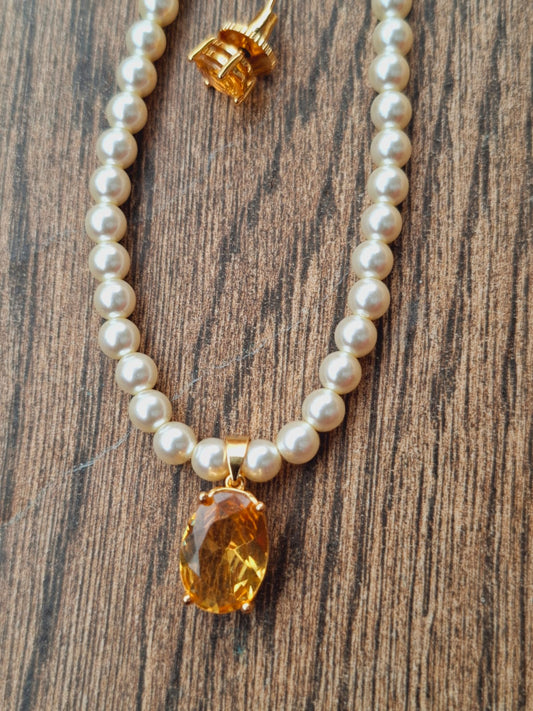 We always use a good quality Semi Cultured Pearl in all our Jewellery. These are all our inhouse designs. Height 18 Inch Length NA Color Yellow/ Offwhite Material Semi Cultured...