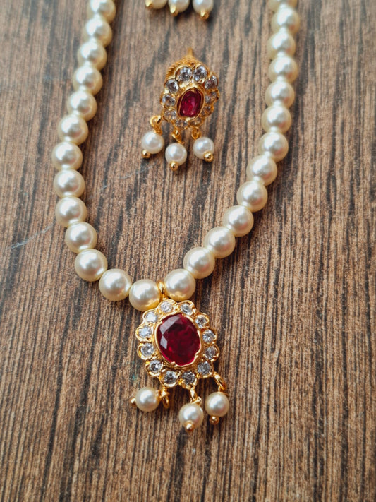 We always use a good quality Semi Cultured Pearl in all our Jewellery. These are all our inhouse designs. Height 18 Inch Length NA Color Dark Pink/ Off White Material...