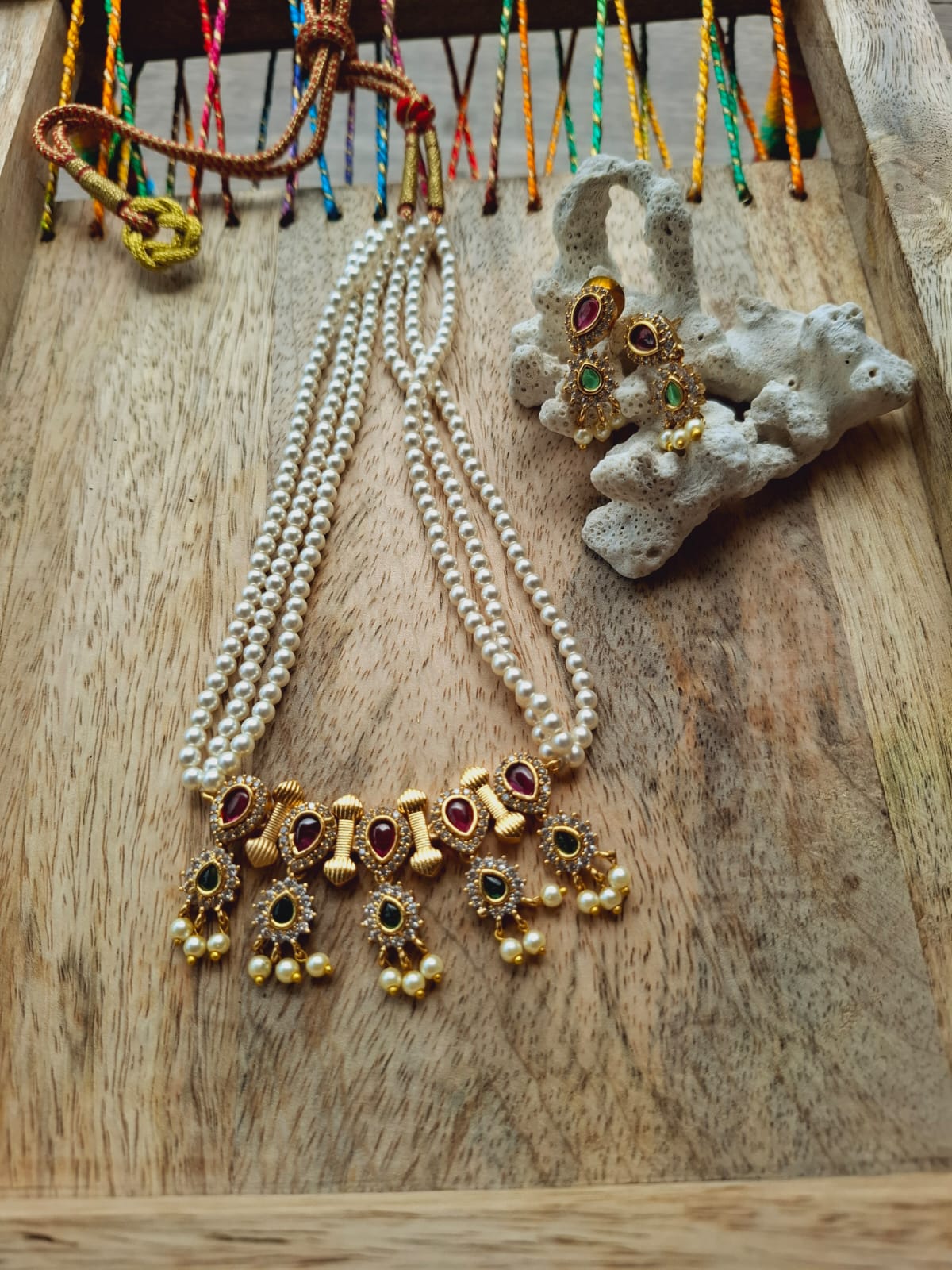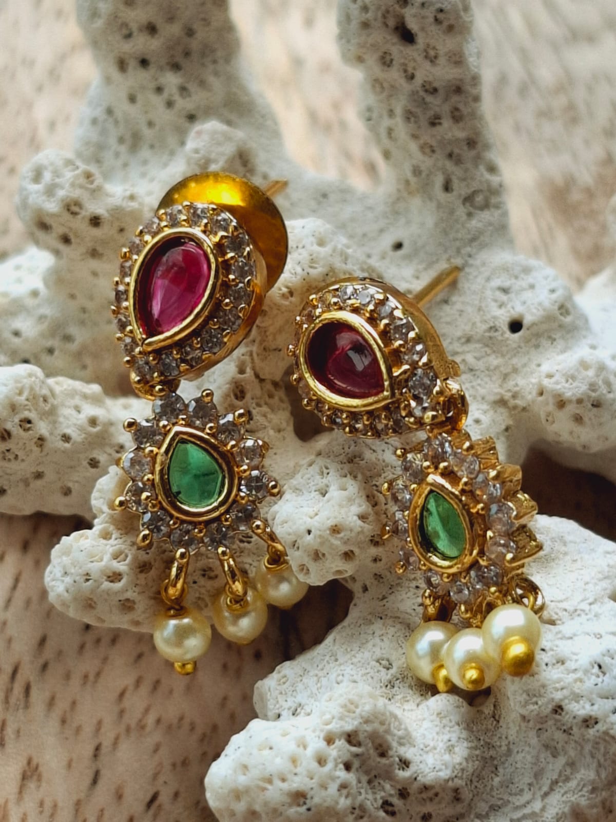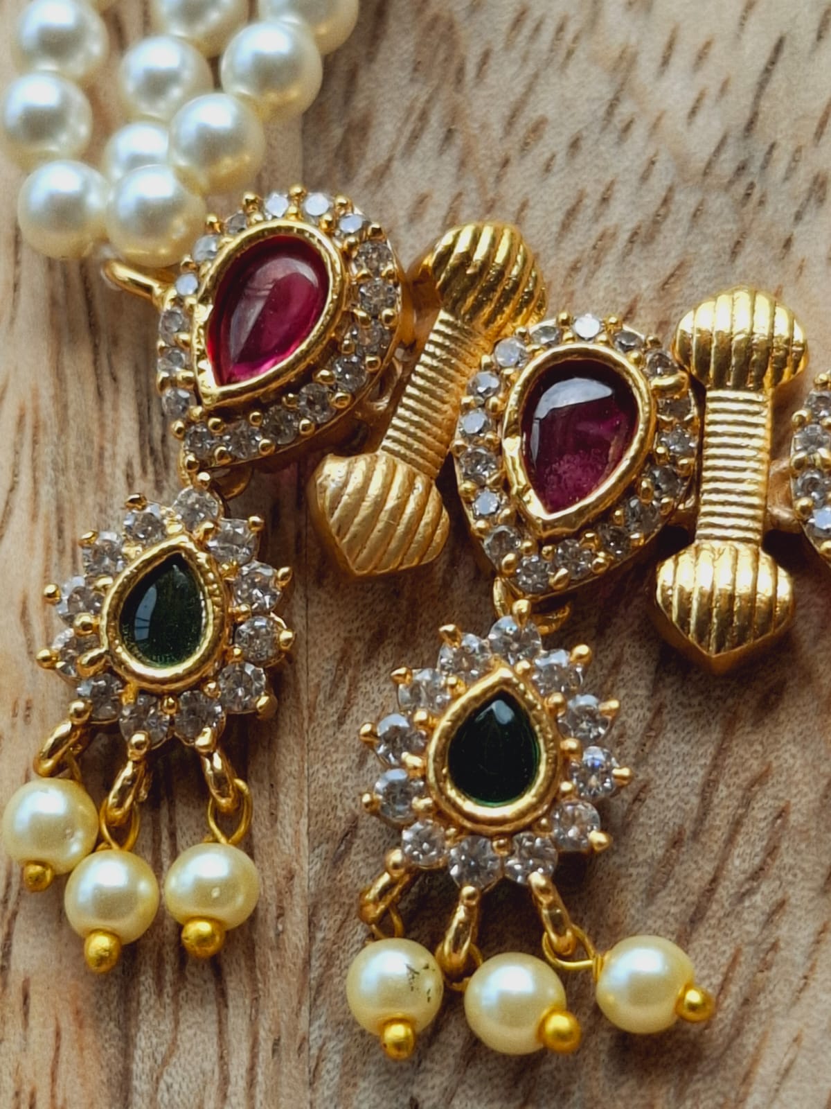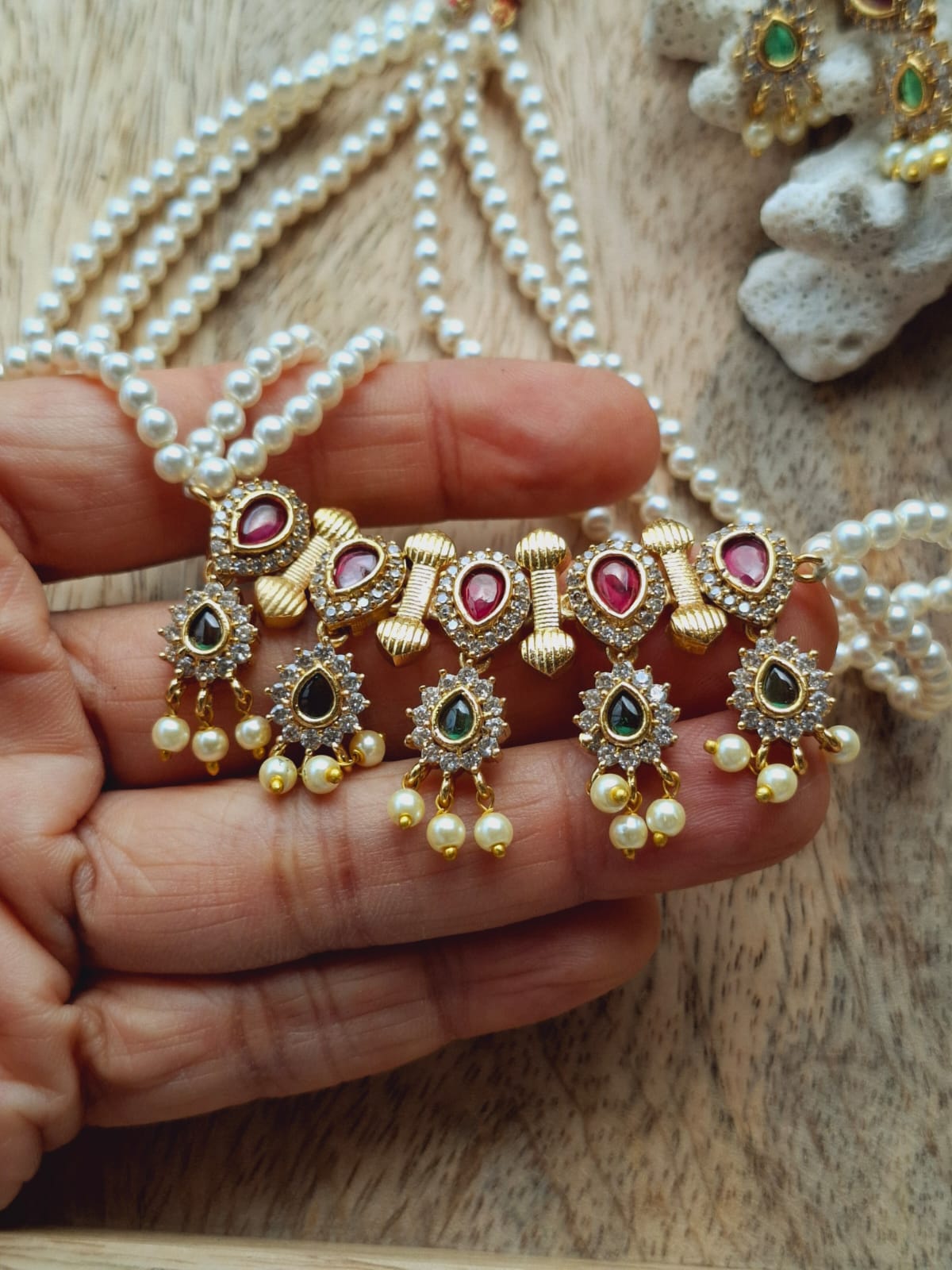 A half-moon shaped handcrafted Tanmani with leaves is in high demand these days. This unique piece will definitely enhance the beauty of your attire!