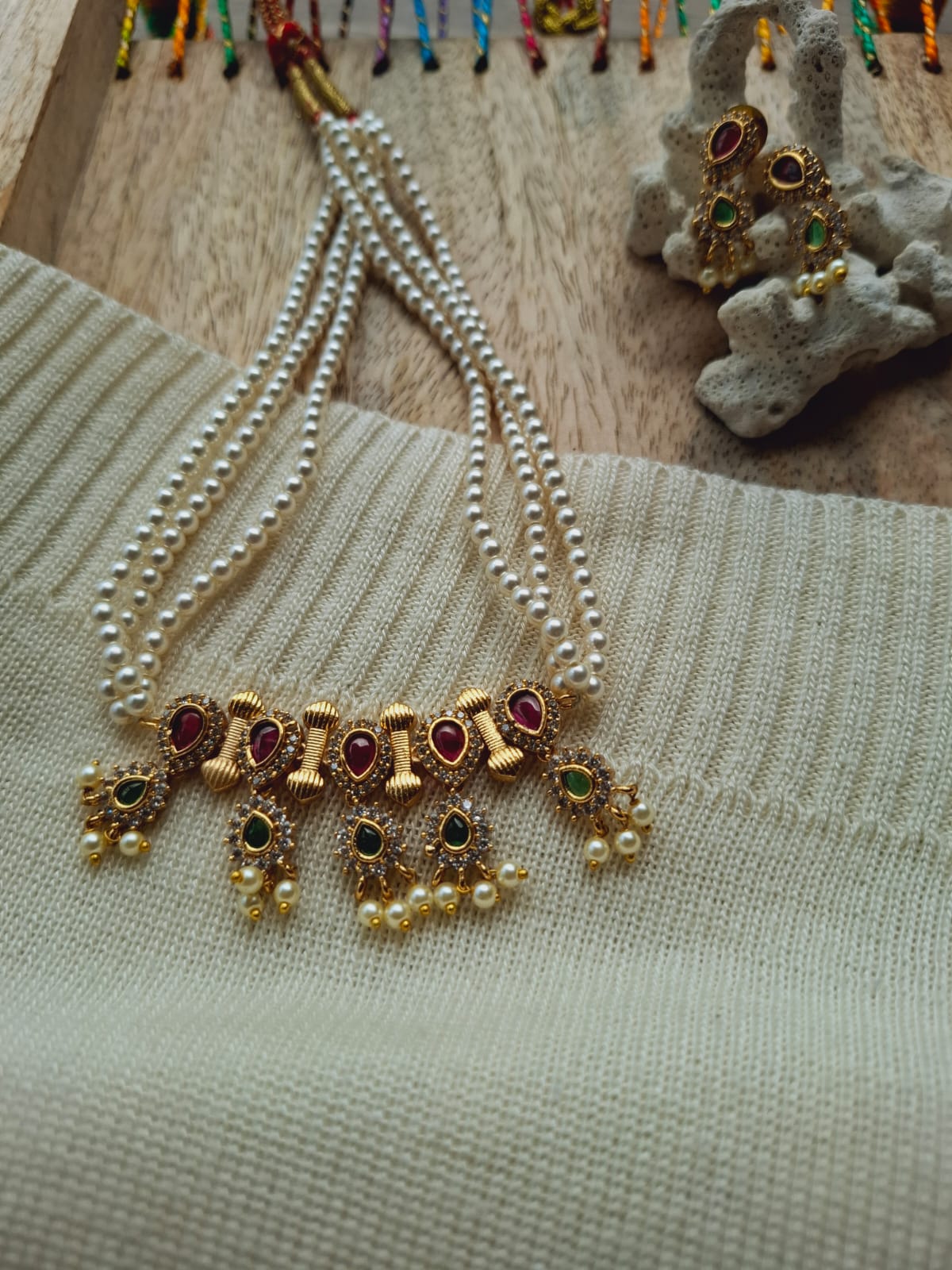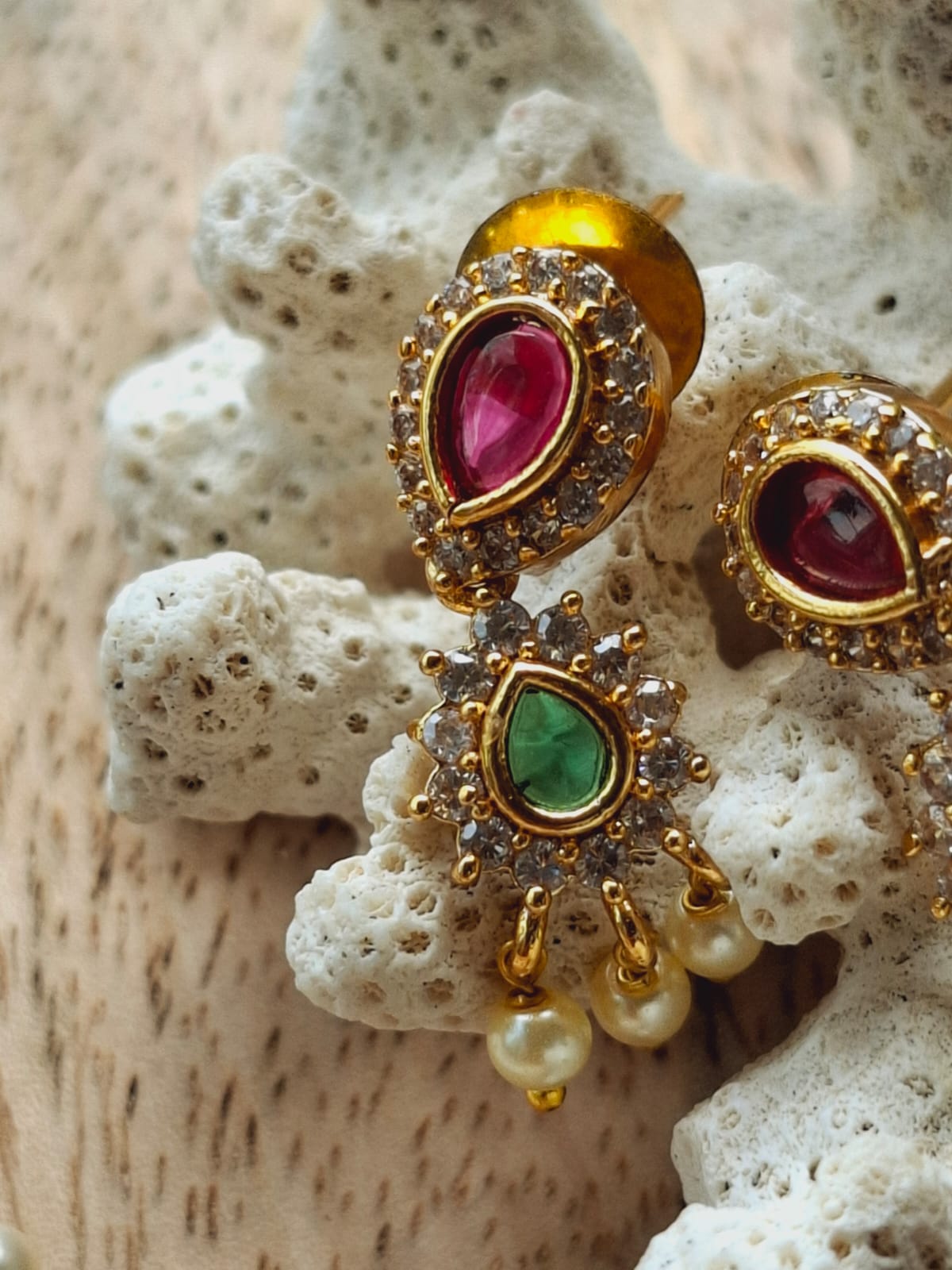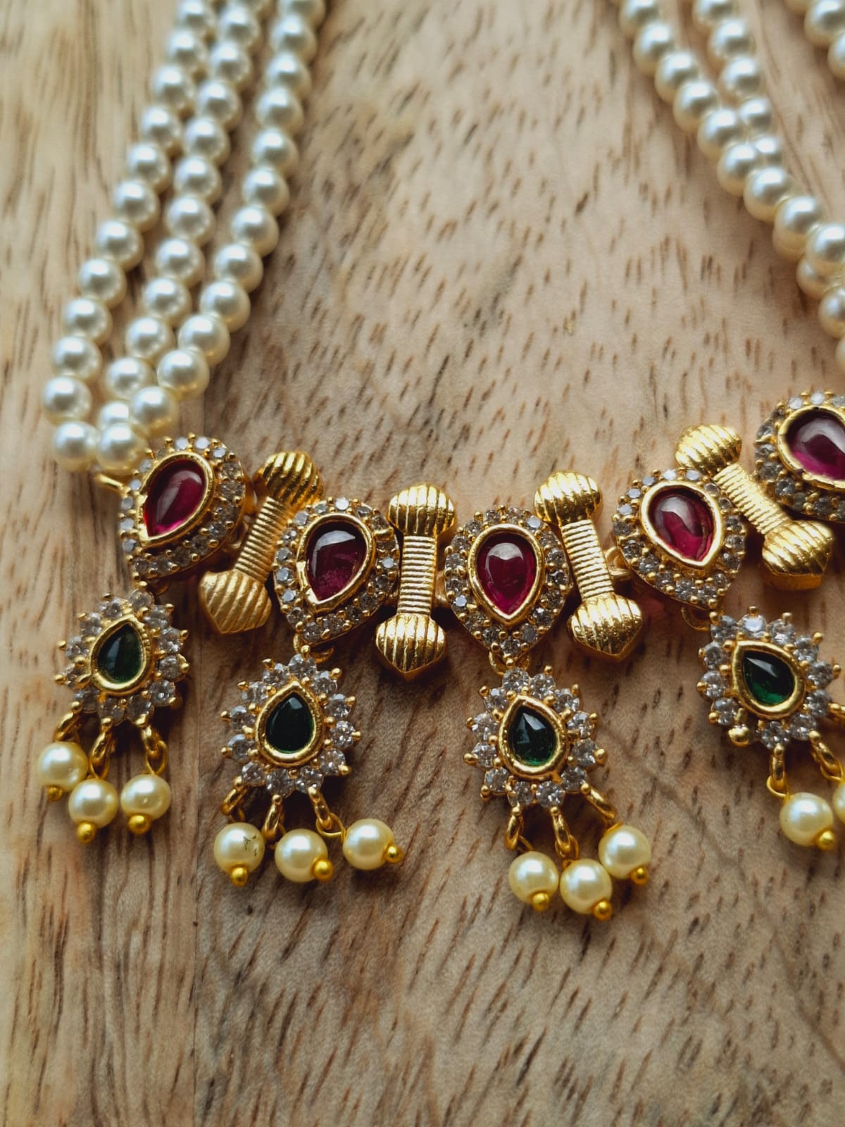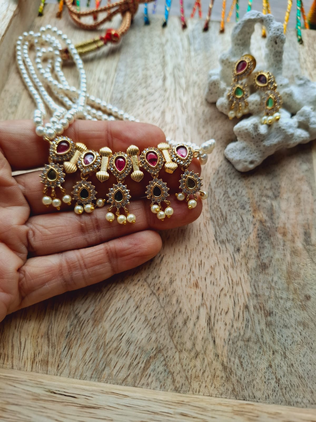 A half-moon shaped handcrafted Tanmani with leaves is in high demand these days. This unique piece will definitely enhance the beauty of your attire!
