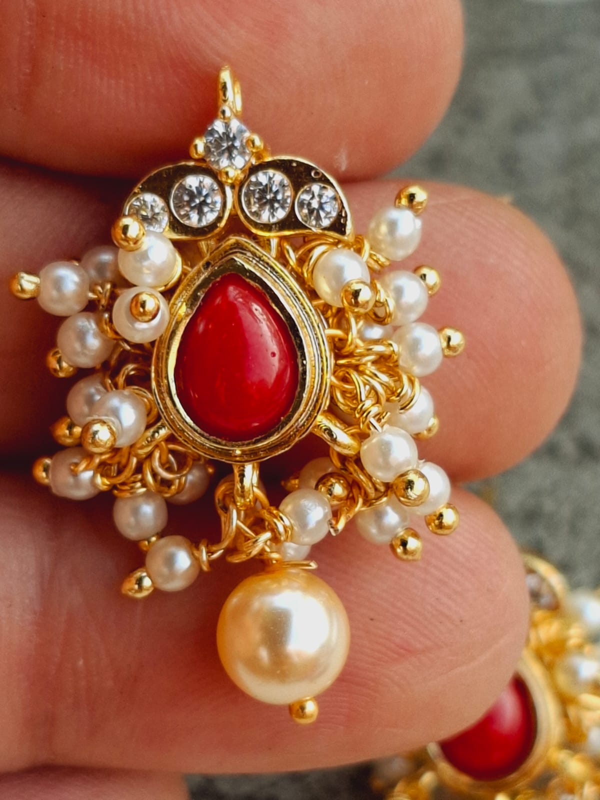 | Material | Copper with CZ Stone and pearl |