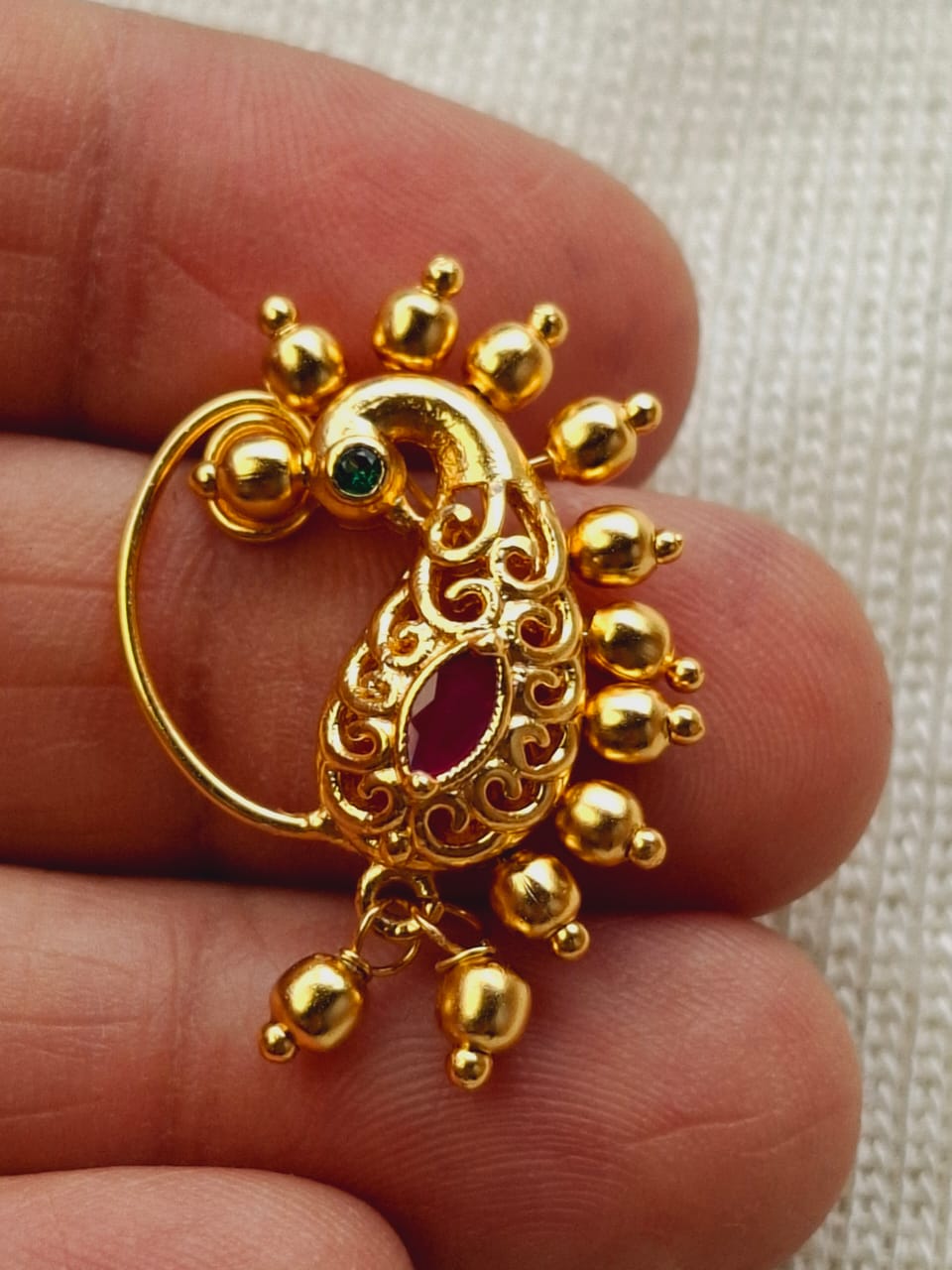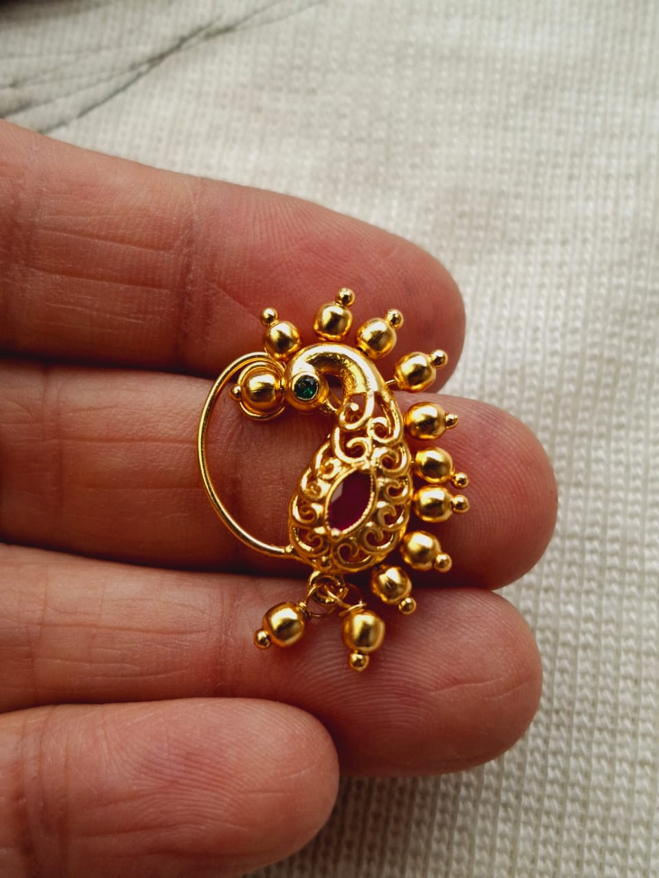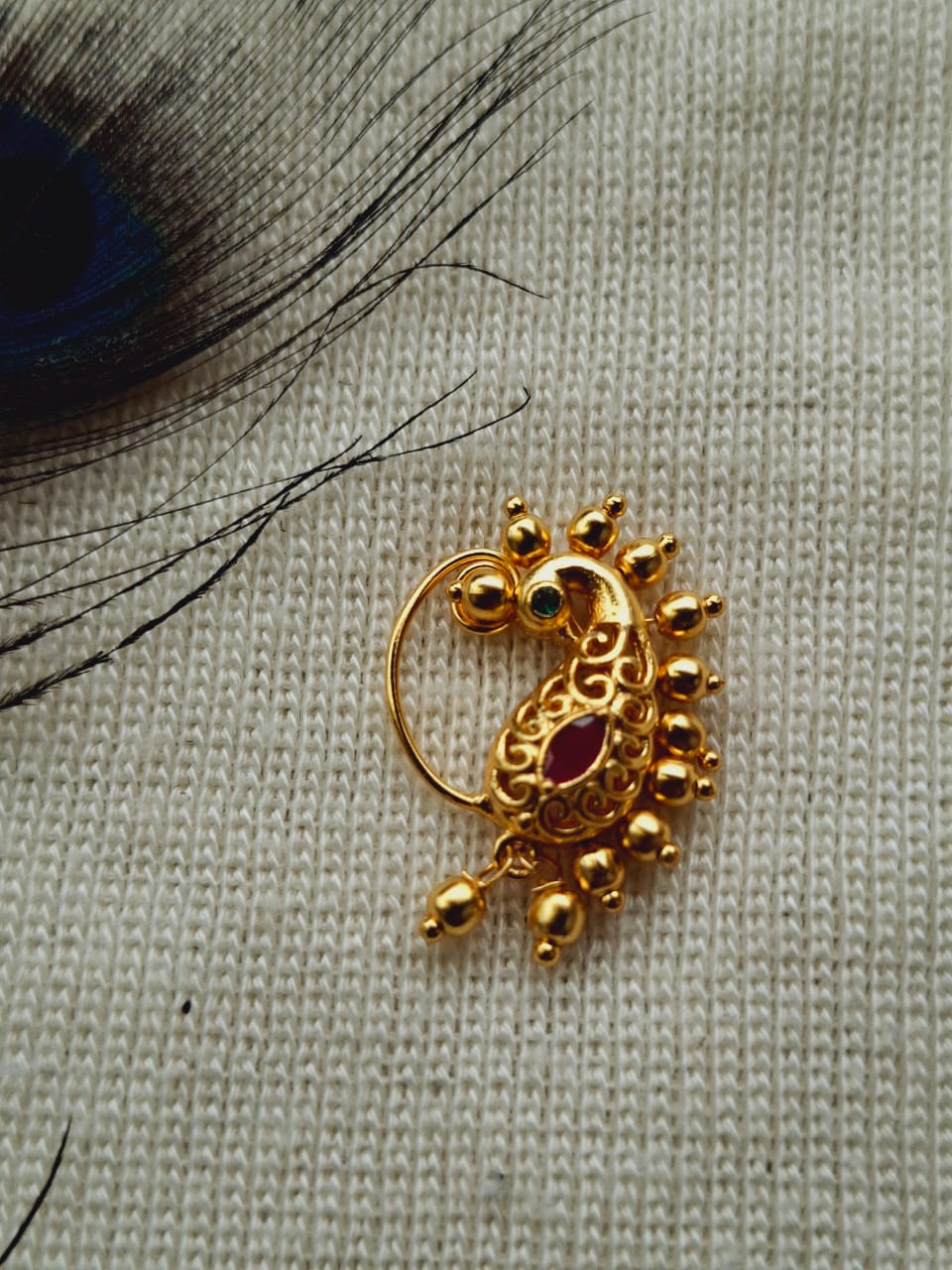 Nath is traditional maharasthrian design but over the period the popularity of Nath has gone on national as well as international level. There are now a days various designs and various colour combintions in Nath. There are various types of nath as well. This is a Classic Pearl Nath which look good on any kind of attire.