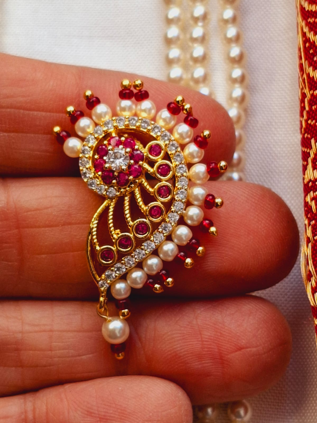 Tanmani is Originated in Kolhapur. Women used to wear this typical tradional tanmani on every single ocassion. Pendant is called KHOD. It has come a long way. Now there are differrent designs and variety in this type. This is typical Tanmani Haar. Originated in Pune