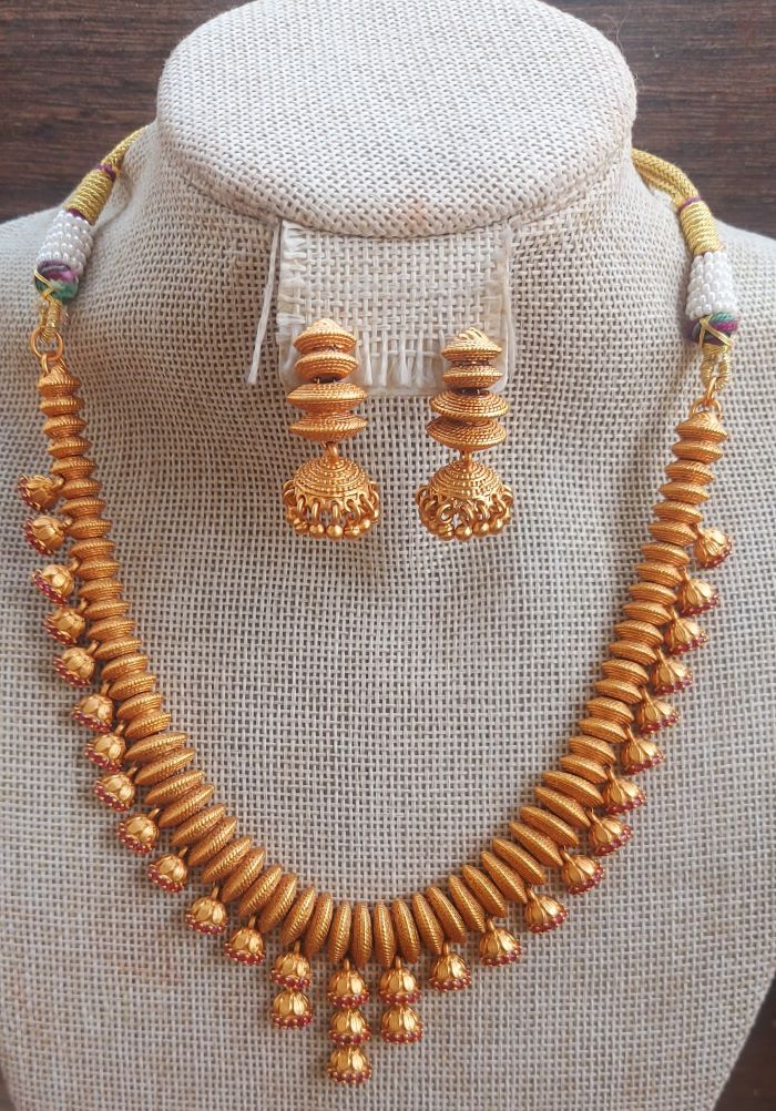 Our In house Designer pieces is our speciality. Our Karagirs work very hard to carve each and every design. Length Adjustable with Gonda Color Golden Material Copper Occasion Any Small...