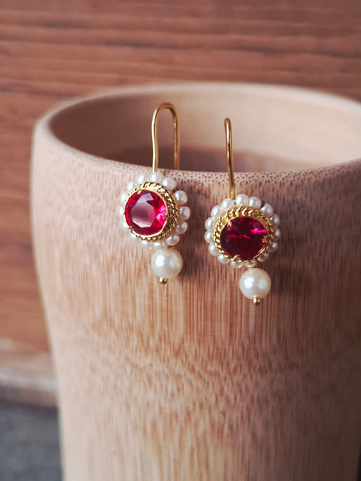Red Stone Round Bugdi cum Earrings