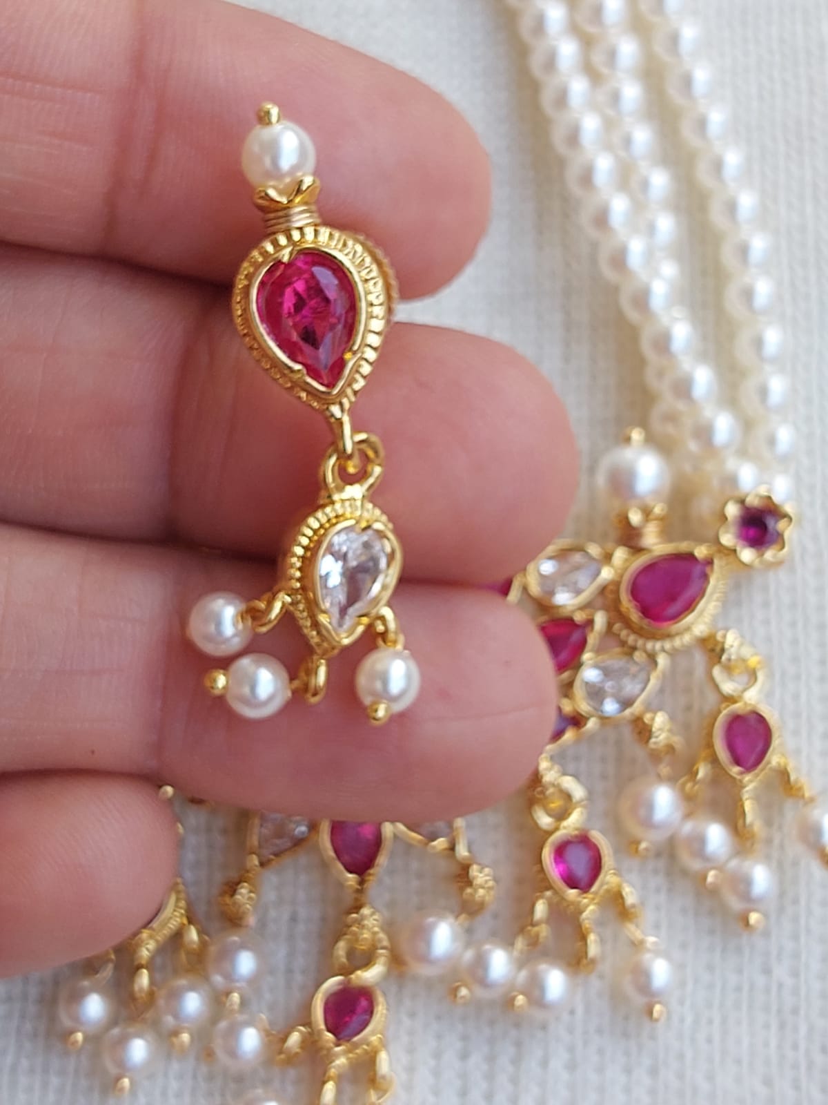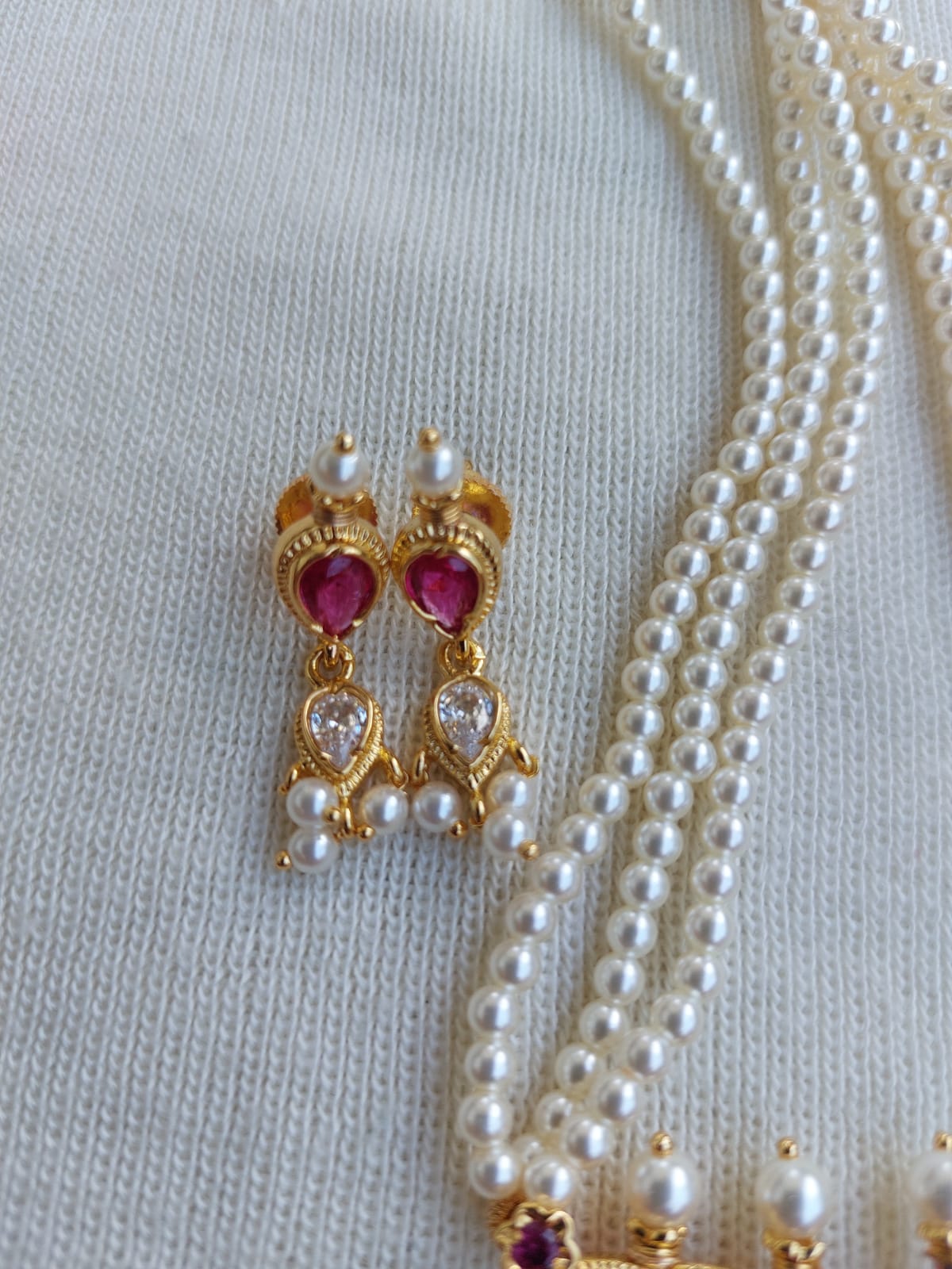 | Material | Copper with semi cultured pearls |