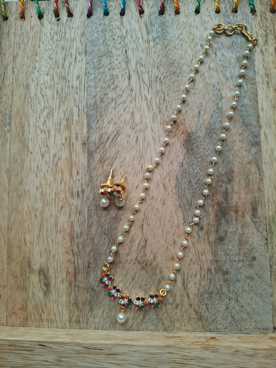 | Material | Semi Cultured Pearls with Stone and American Diamond |