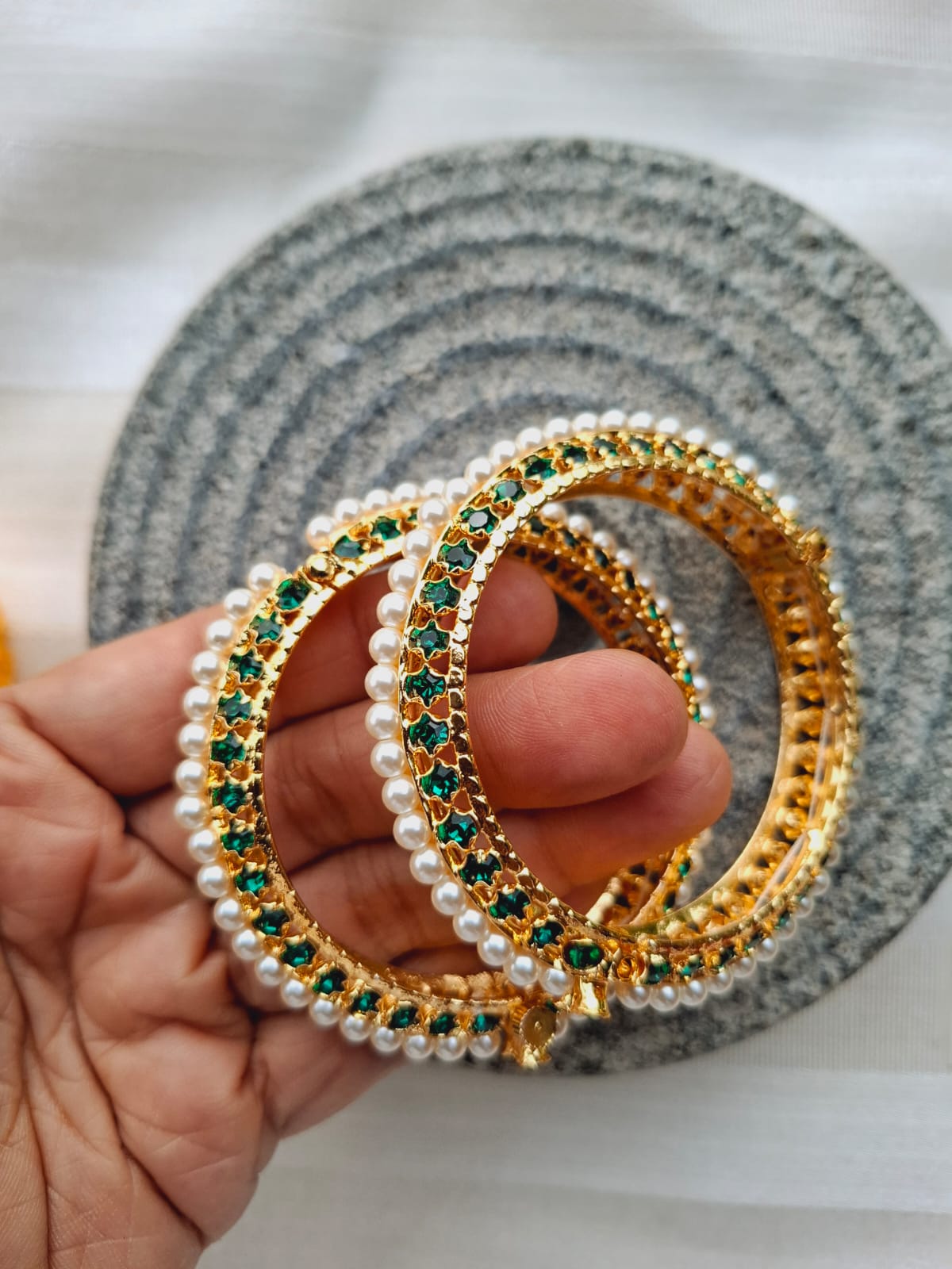 Bangles are the most commonly used jewellery in every woman's traditional attire. Our Karagirs beautifully craft each and every piece which we love to introduce in our collection.